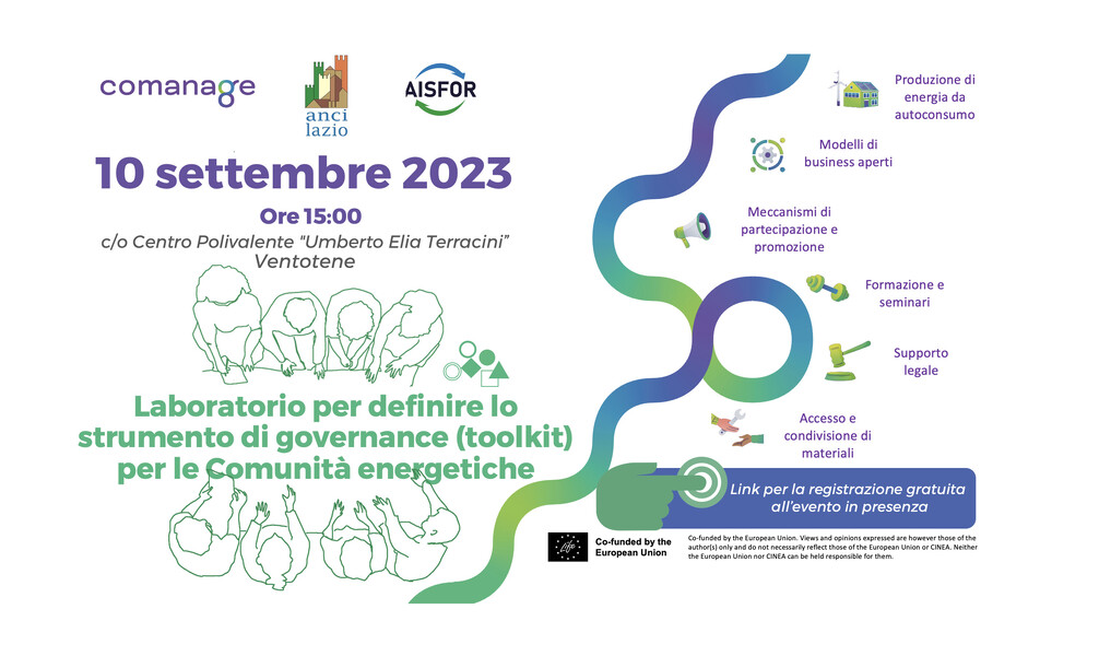 Il progetto COMANAGE, cofinanziato dal programma LIFE dell'Unione Europea, rappresenta una collaborazione tra ANCI Lazio, AISFOR e partner di progetto in sei paesi europei. La sua missione è fornire alle comunità di energia rinnovabile e alle autorità locali uno strumento innovativo chiamato "Energy Communities Governance Toolkit" (ECGT), progettato per semplificare la gestione dei progetti energetici.